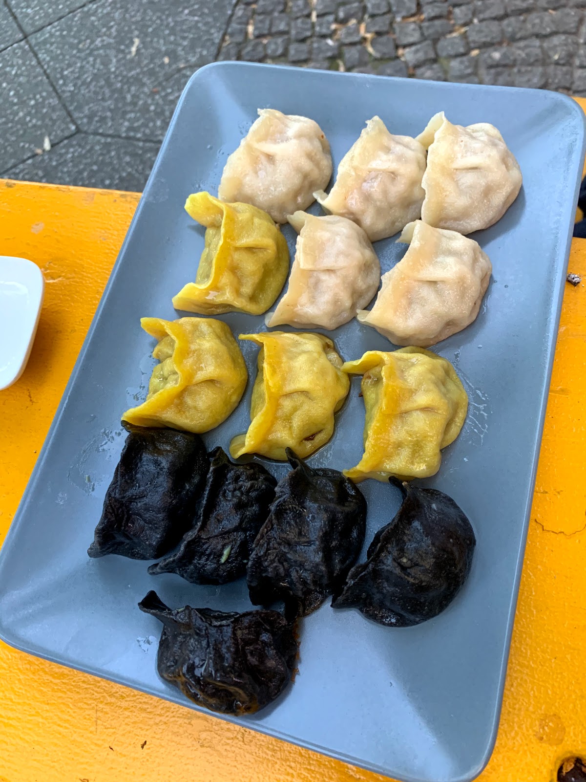 Frozen dumplings with no taste! I took the beef dumplings and they tasted very watery. Sadly would not recommend. The sauces were empty (other than soy). Price quite high (7,50€ for small portion).