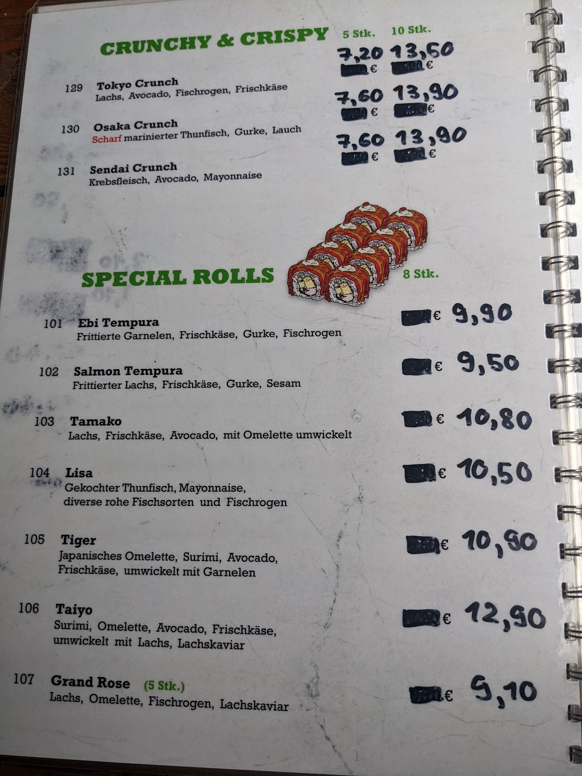 We tried the surprise sushi set for two and every sushi had salmon. Some pieces had something else with salmon but always salmon, so indeed we were surprised. The taste was fine but I wouldn't say it is worth 33€. The drinks with and without alcohol are a safe bet and the mango rice as a dessert is Ok. The staff was nice and efficient