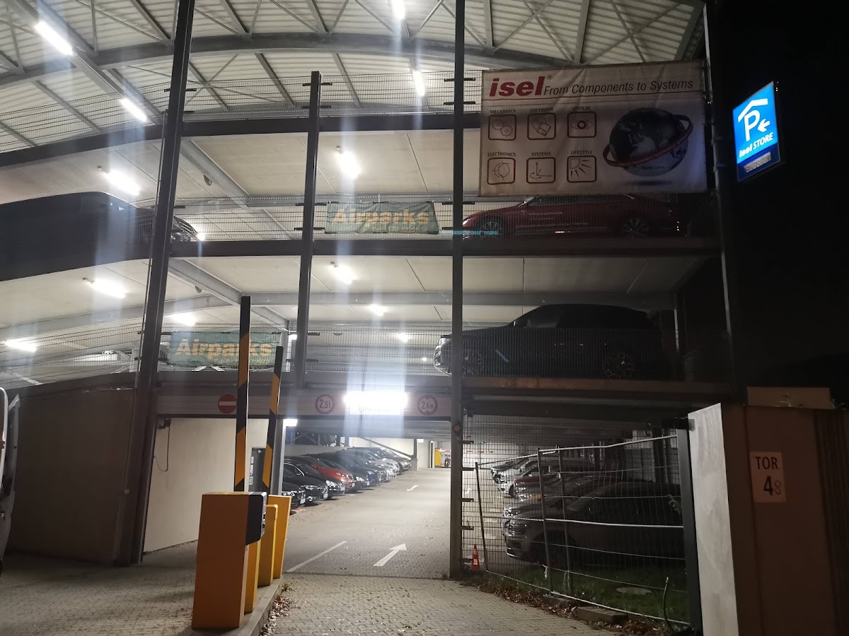 (Translated by Google) We were greeted very friendly by the shuttle driver, who was on the spot and then drove to the airport. The parking garage has a lift and is very nice clean. Outwardly with its two gates already like a fortress. My wife also liked the parking and the good lighting. Even she had no problems with the reverse parking. I was very satisfied. Everything worked out as I imagined. From reception to pick up at the airport. Incidentally, there was a nice conversation with the driver, what more could you want :)