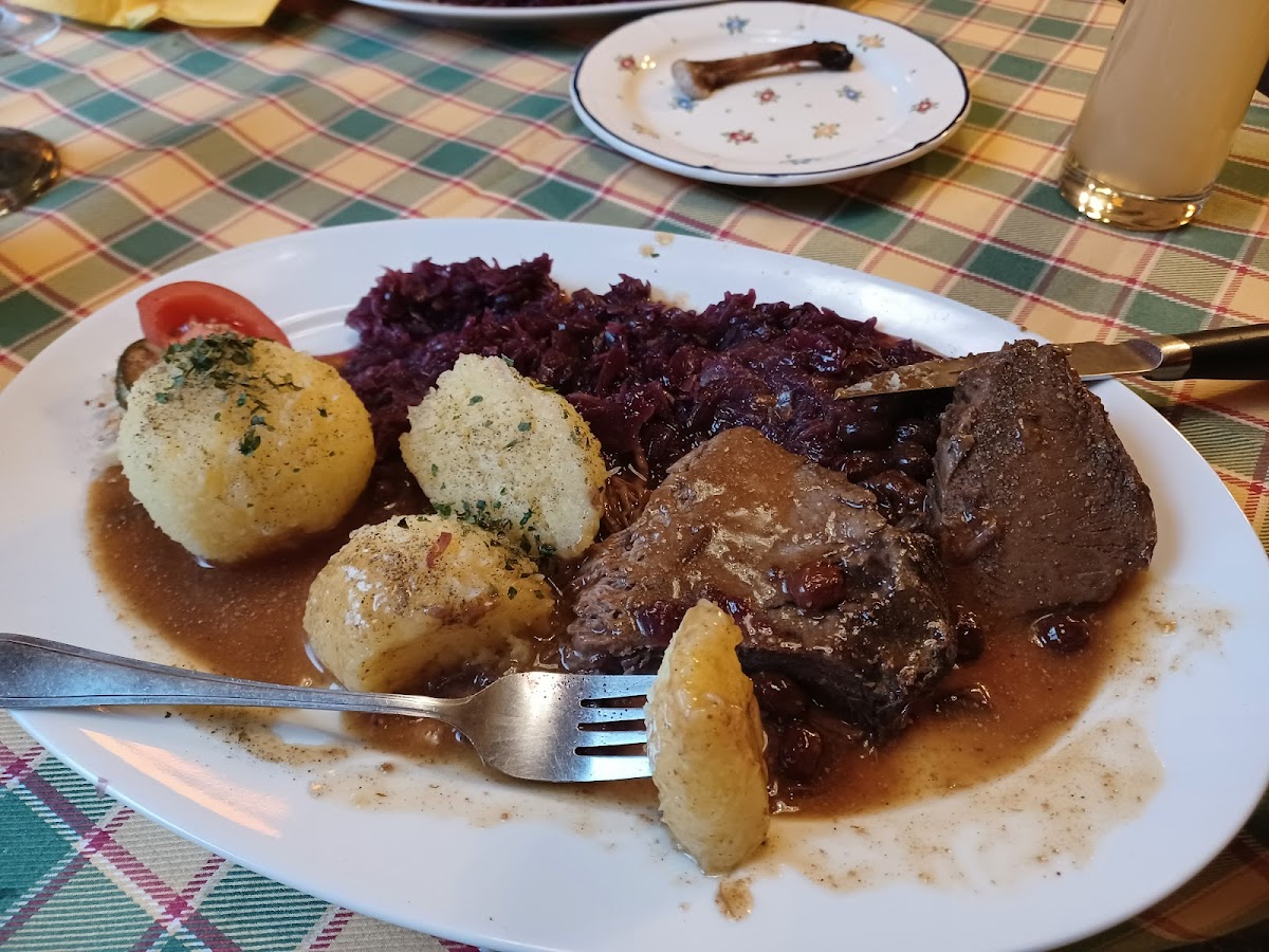 Leckere Hausmannskost! Roulade frisch und lecker, sehr zartes Fleisch. Preis in Ordnung, 1,50€ über dem