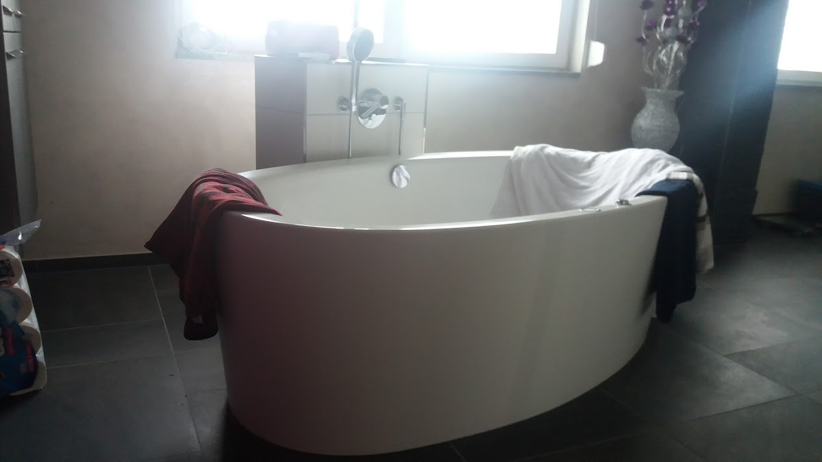 * Bad-Hygiene ungenügend (Urinstein/Kalk, Schimmel, gammel Duschvorhang, Hand/Badetücher auf Fußboden).