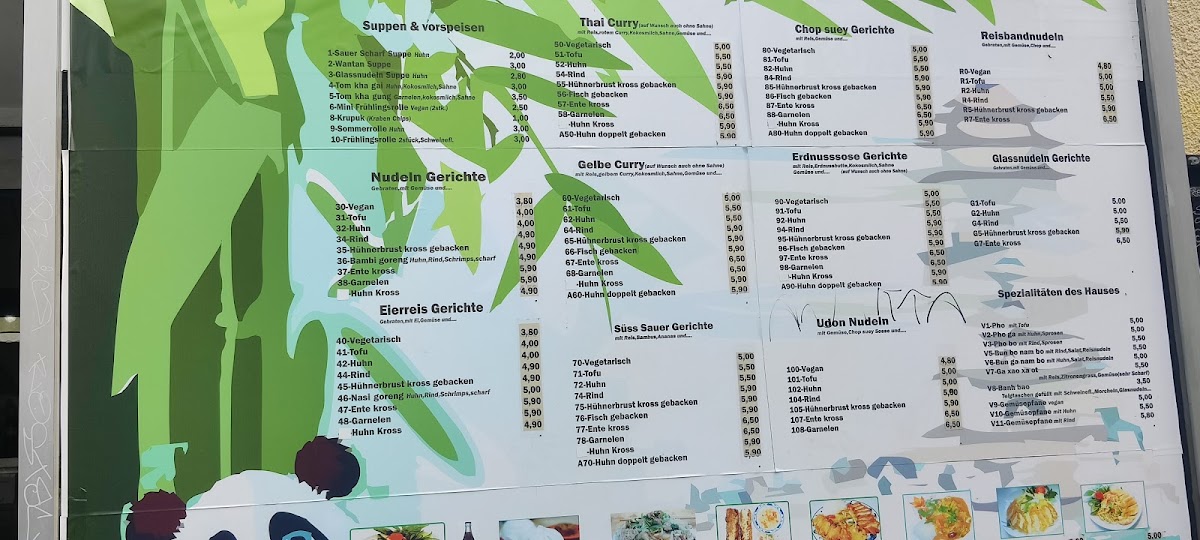 (Translated by Google) Small shop with lots of minus points. Visually, the interior looks neglected and careless. Cutlery colored together, partly from cheap plastic in small baskets that were at least glued to me by sauce. The kitchen is in a back room from which the unpleasant smell of old fat came. I had duck chop suey. Fresh tastes different. When I tried the duck it became clear to me that savings were made at every corner. The aroma of old fat ran through the whole dish. Duck was tough and dry. Never again. Some think it is cheap ... 100m further around the corner is an Asian. There you get reasonable quality in a clean and modern room for the same price.
