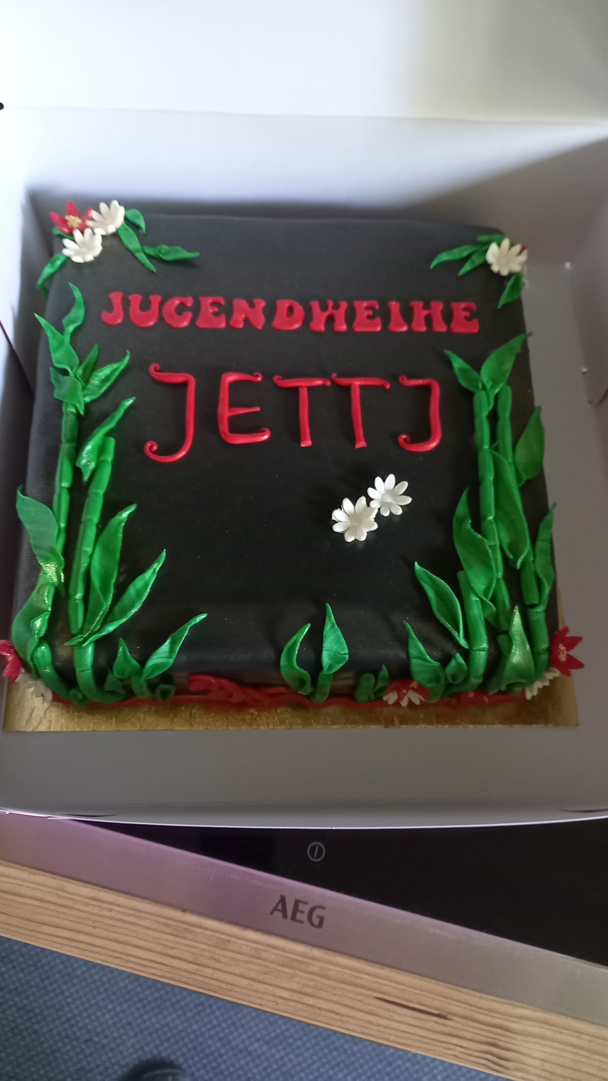 Ich wollte was besonderes da viel mir ein das ich ja eine Torte ja bei die Bäckerei Müller in Mahlsdorf bestellen kann denn ich sehe immer das super Angebot alles sehr sehr lecker Also hin hab mich mit einen Kaffee beraten lassen auf Kosten des Haus Die Jugendweihe von unsere Enkelin stand in den nächsten Tagen vor der Tür nun wollte ich das was unsere Enkelin mag in Farben Schwarz Rot Grün mit Bambus und Blumen Die Füllung der Tote war sehr lecker Butterquarkcreme mit sommerlichen frischen Erdbeeren ist empfehlenswert sehr lecker. Ich wurde sehr Fachgerecht Beratung und Ideen.Sehr Nettes Personal und natürlich Team Vielen Dank für die Nette Beratung Die Torte ist sehr gut angekommen unsere Enkelin hat sich riesig gefreut und wir auch