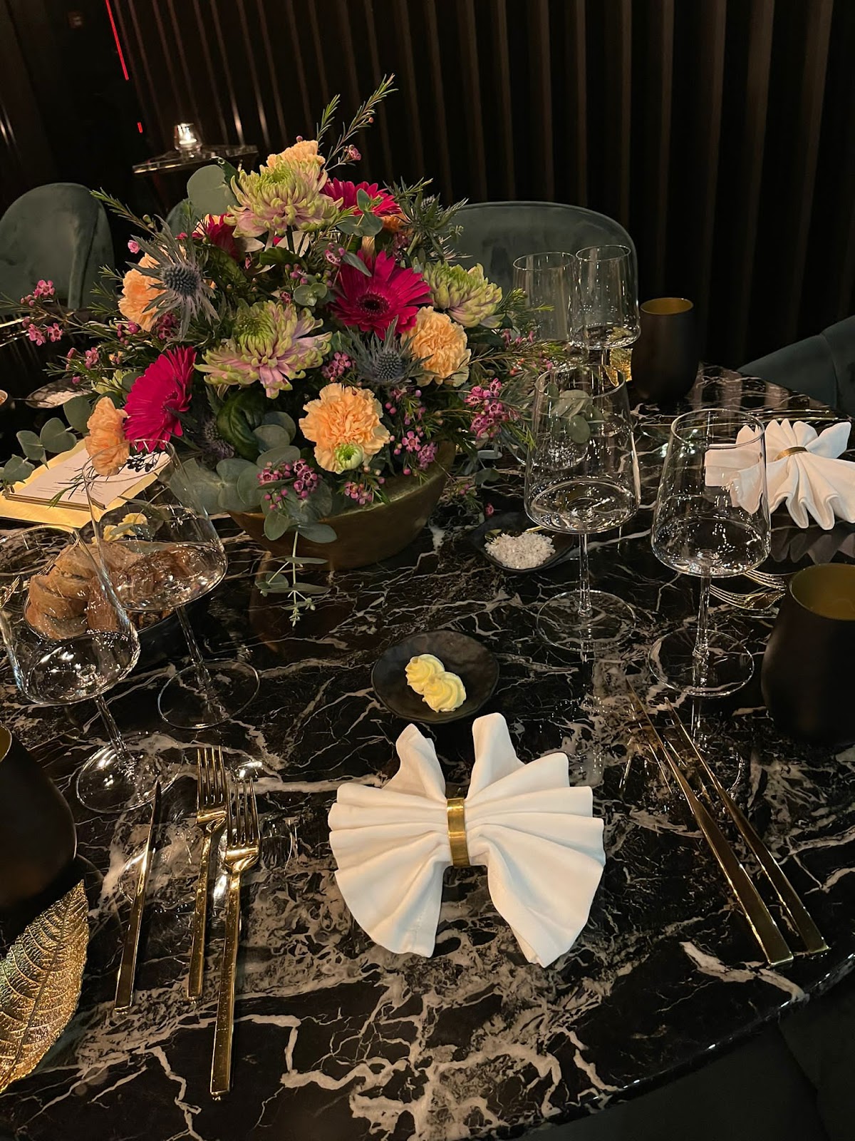 Food was a journey of tastes.. We started with aubergine (vegan) and kalb semerrolle thunfisch. Nice grilled combined with crispy greens. The main dishes were 2erlei vom US short Rib served with delicious gratinate potato, smoothie wonderfull broccoli morse and crispy grilled broccoli and as an extra point of the dish the vanilla gelatine creating an unforgettable ending for the mouth in every single bite. And the second main dish was entrecôte vom kalb with specialties Jerusalem artichoke and rabarber..
