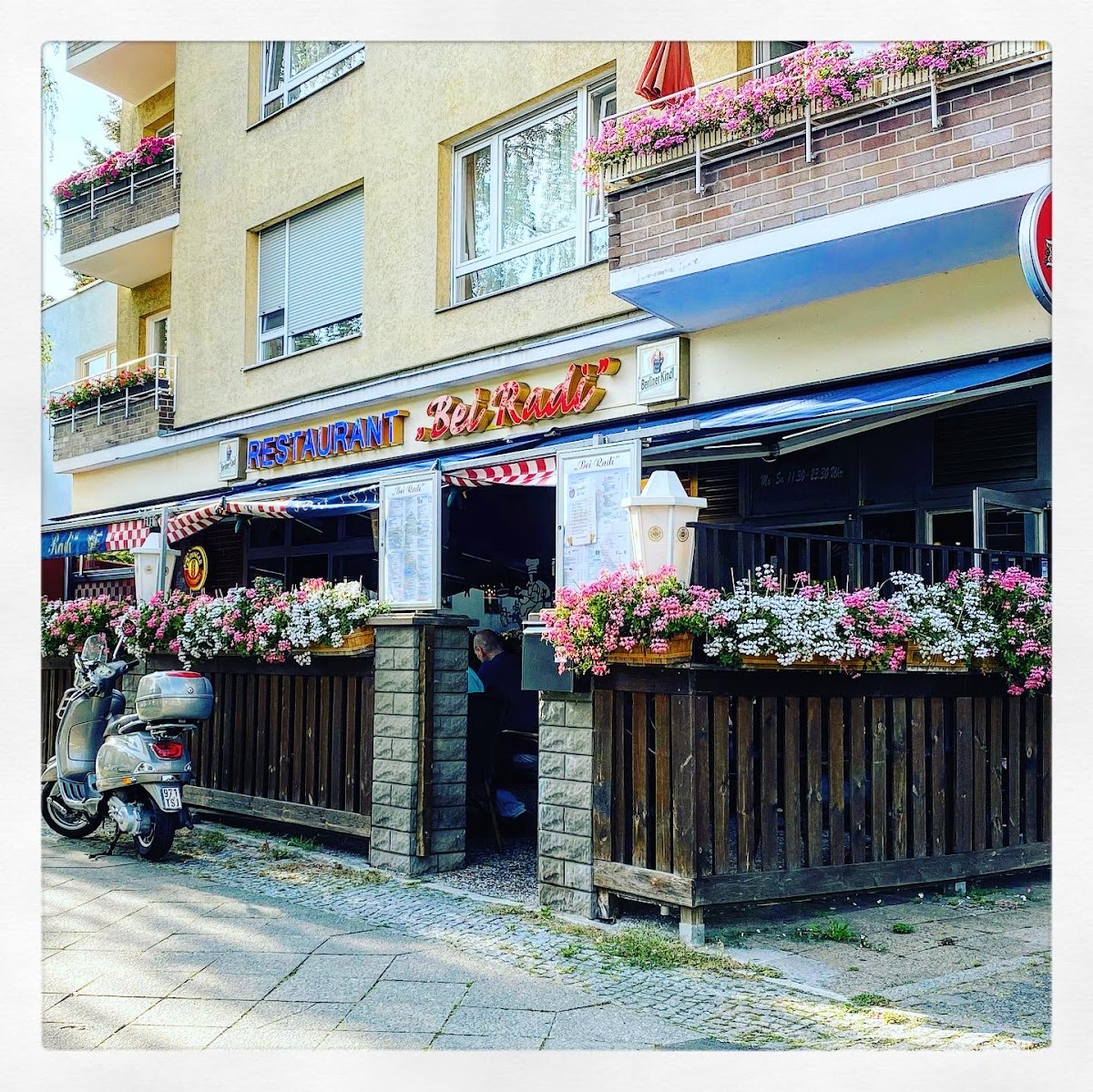 Are you kidding me??? This was taken after I'd eaten about half! Bilingual (maybe trilingual) Menus in both German and English. This was #61. Grilled and seasoned to perfection. Very helpful staff AND owner! Couldn't eat it all and super affordable. This was under $11 and came with a choice of salad. Everyone at the table was in awe and FULL!! Bring your family or date. Eat inside or outside on their beautiful porch surrounded in flowers for privacy from the street.