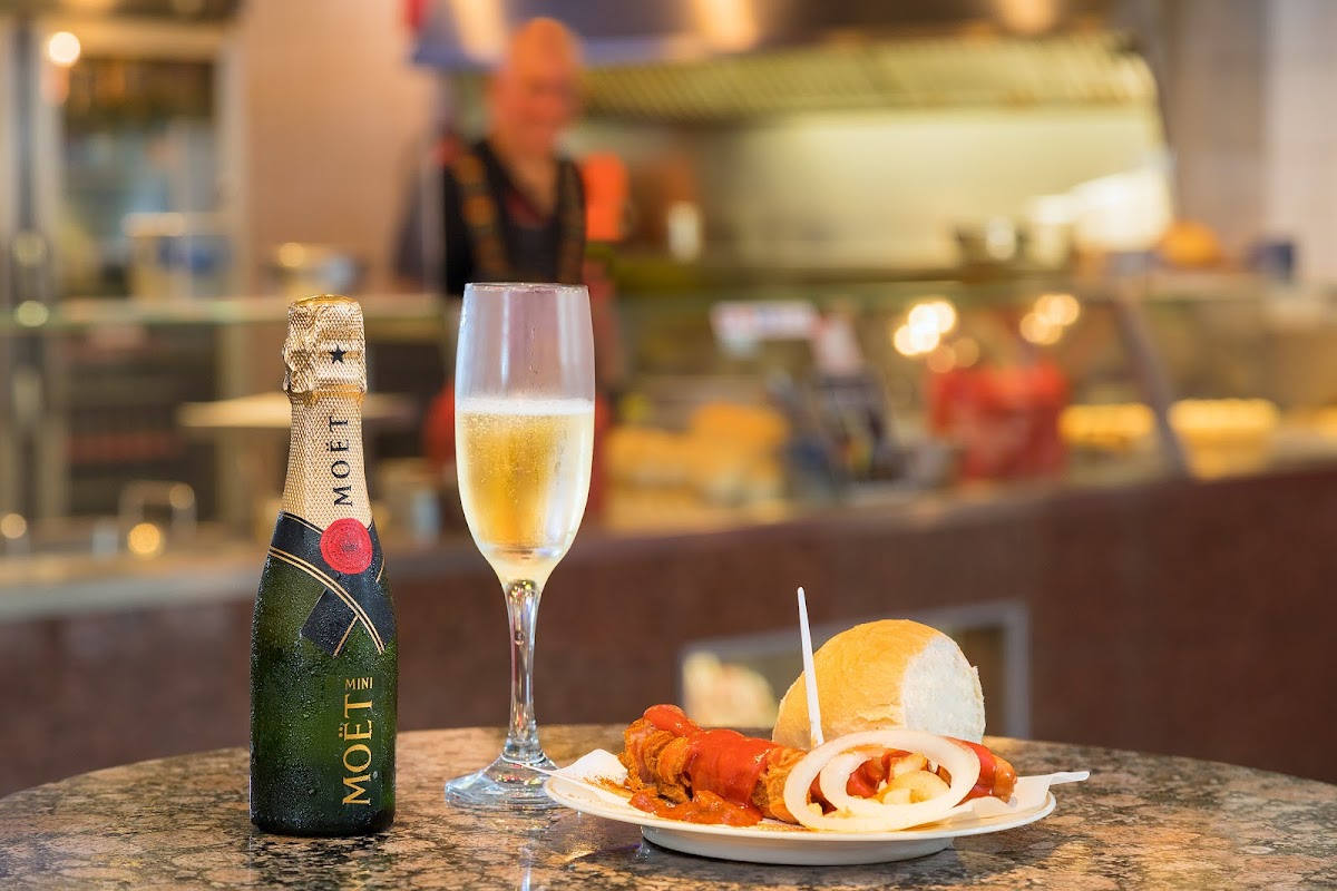 This is one if the top currywurst places, you can even get it with champagne. It's fun and good quality! German is preferred as well as cash.