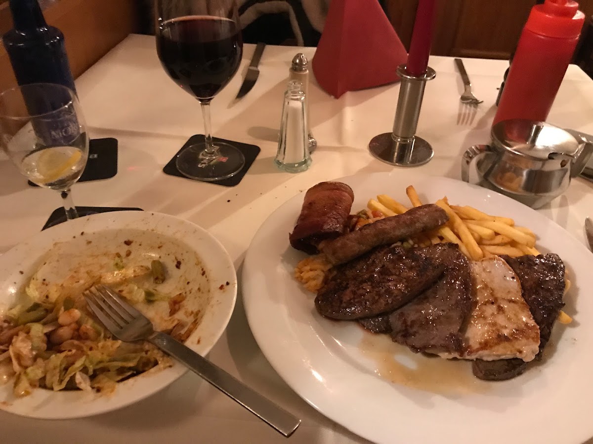 It was good! I had no idea that I liked Croatian food, having never had it before, and it was awesome. Epic quantities of meat, a good salad, and this cool onion-pepper-paprika condiment That should happen all over the world. Friendly helpful waiters.