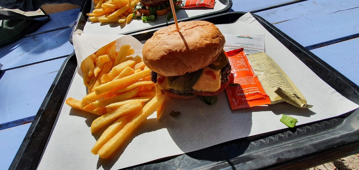 Small fast food place where you have to order yourself. The sitting place is basically only outside, but the outside area is pretty big. Burgers are REALLY GOOD and REALLY BIG. If you think you need French fries with it - think twice, as you will be surprised of how big the burger is. Veggies were also very fresh and it was a great amount of them inside too (I am a person who likes more vegetables in the burger, so it was perfect combination for me). Definitely recommend if you wanna classic burger with a soft bun. I will personally surely coming here again.