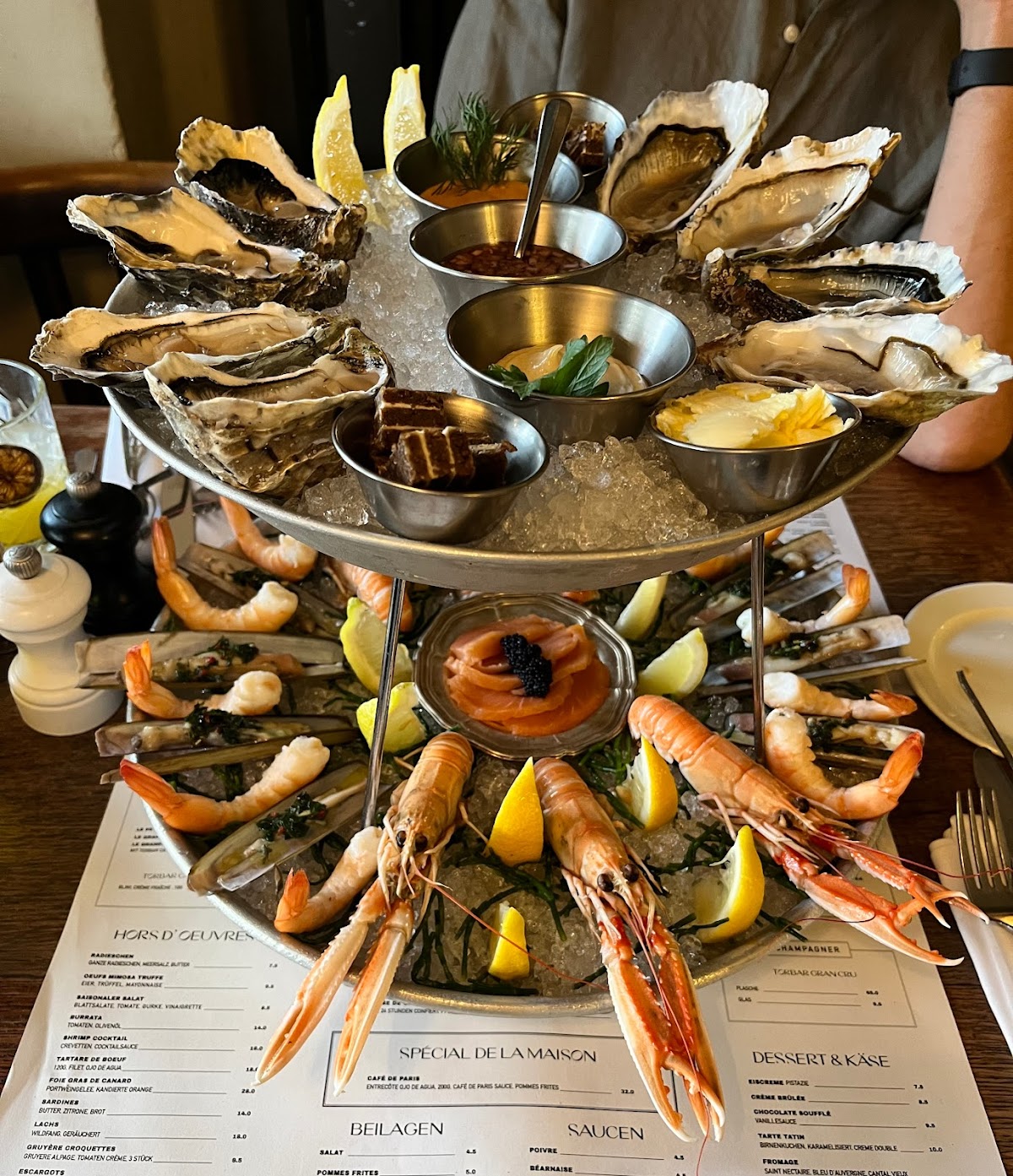 The oysters were very correct, slightly different in size, but the overall taste was great and very fresh, served with a sauce of apple cider vinegar and shallots. I am making oyster sauce on champagne or prosseco the taste is more refined and not very sour.