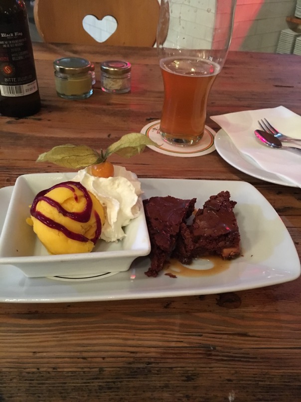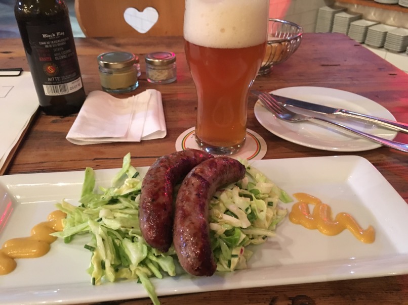 I would recommend the Bloodsausage and some CLAN (scotch Ale)