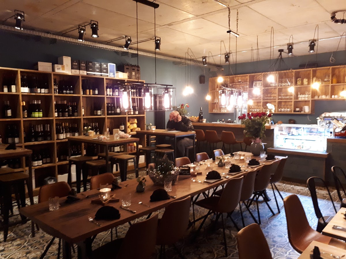 Schicke und stilvolle Weinbar mit passenden und wechselnden Bistro-Kleinigkeiten zum Essen z. B. Ölsardinen mit Aioli, Miesmuscheln, Zanderfilet, Steinpilzcarpaccio, Tartar vom Rote-Beete-Lachs, Salbei-Risotto, Kalbsrippchen, Lammkeule, Rinderfilet, Hirschgoulasch, Käse, Sorbet, Zitronentarte etc. Es gibt auch Wein, Bier, Aperitifs und Gin Tonic. Stilvolles Ambiente, angenehme Atmosphäre, schöne Terasse.