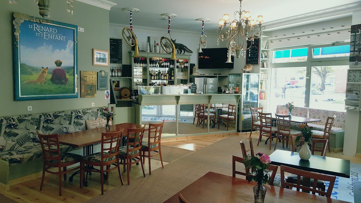 The cafe "Le Renard" tries very hard to be a french . The whole place is plastered with memorabilia and movie posters and whatnot from France, which is a little odd since the guy running it is Spanish and all the other staff if German. Anyway, who cares? The cafe has decent breakfast, nice coffee, and plenty of beer, teas and wines. They also serve various flavors of ice cream. There is free WiFi with decent performance. The staff is very friendly and typically in a good mood.
