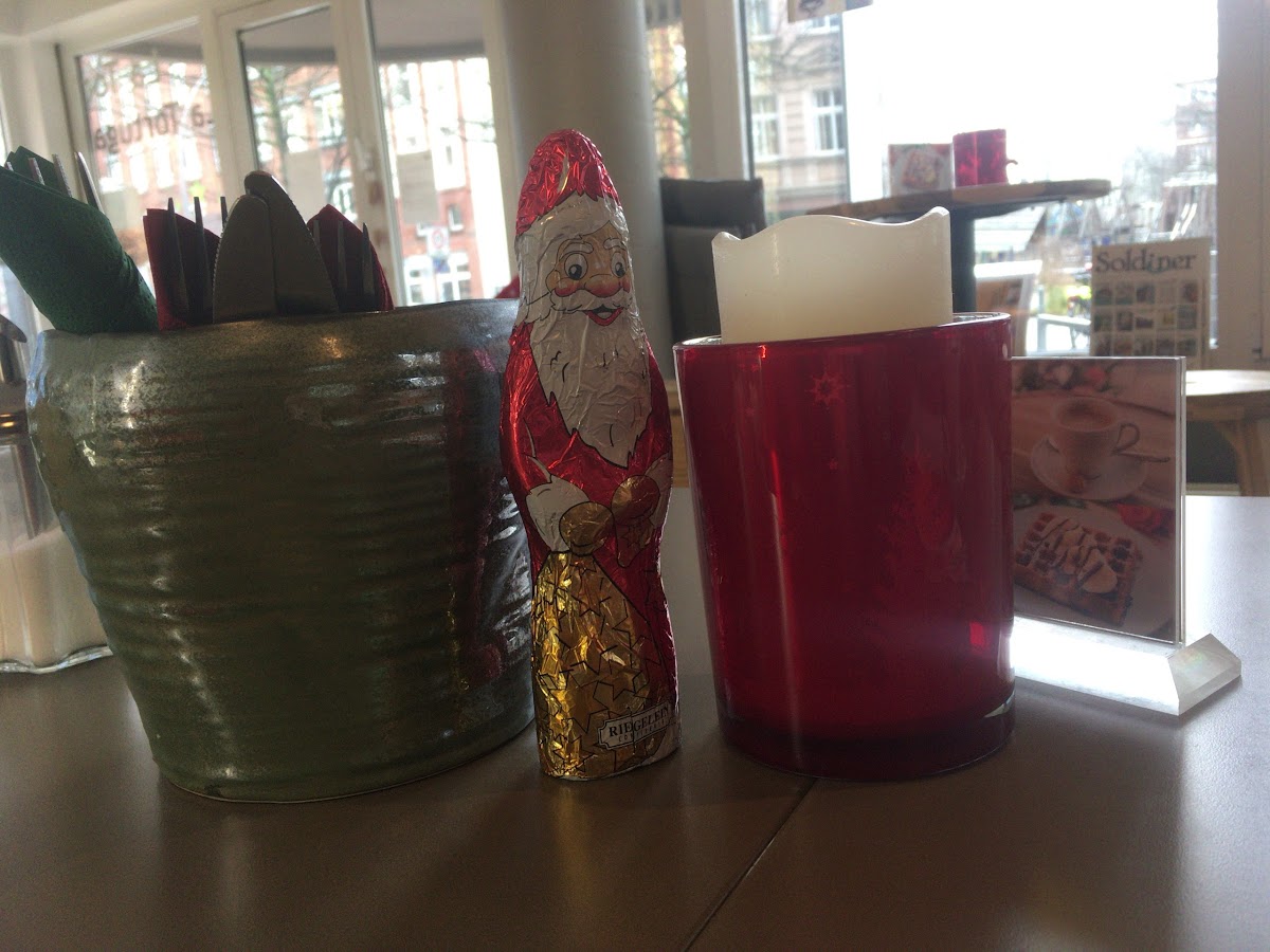 Really an amazing place, good prices, good coffee and Waffeln, good atmosphere: relaxed and calm place with nice music. And you can decide wath kind of table you want for you today! ????