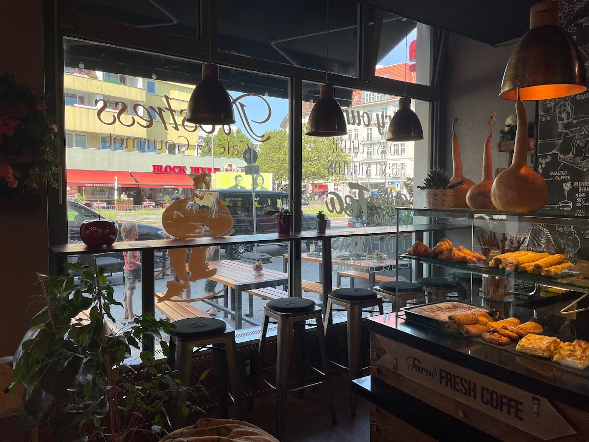 We live upstairs from this cafe and are SO HAPPY it's opened! I have craved healthy whole-grain salads, vegan desserts, and American style cakes since we moved to Berlin five years ago - these things are easy to get in the East, but very hard to find here in the Far West. Now I can get yummy treats downstairs, with comfortable seating, super-pleasant ambiance, and friendly service. I love the red beet and grain salad, the vegan Doppo cake that's like a giant caramelly British flapjack, the chicken wraps, the lemon cake... You can get a lovely sit-down breakfast but I generally get takeout because we live upstairs!