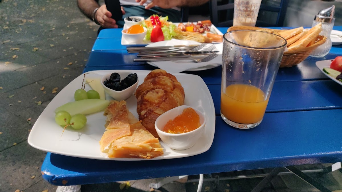 Delightful. We had for breakfast the small plate of cheese, the big mixed plate, and 2 coffees. We paid 21€, payment with card is not possible.