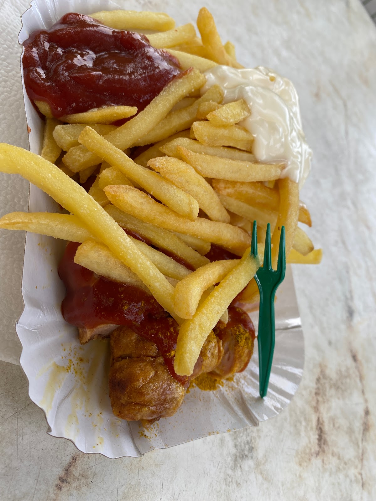 The currywurst is put in the warm fat for 1.5 min, the fries were only briefly warmed up for 1 min, so unfortunately it tasted good, mayonnaise without taste ????