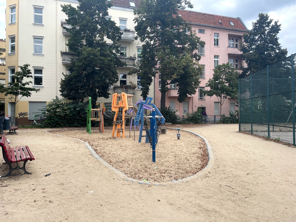 (Translated by Google) Great playground for young and old with plenty of space. There are sports equipment, table tennis tables, basketball and soccer fields as well as swings, seesaws, two slides with obstacle courses and of course lots of sand. Here you can spend a nice long day with the whole family.
