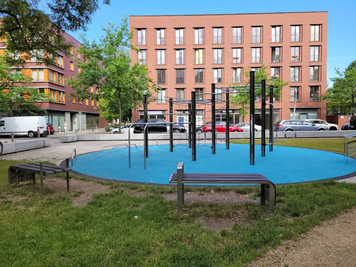 (Translated by Google) Large playground with fenced soccer field and basketball field. The training area is large and allows for a proper full-body workout. Very solid device. Great for big and small!