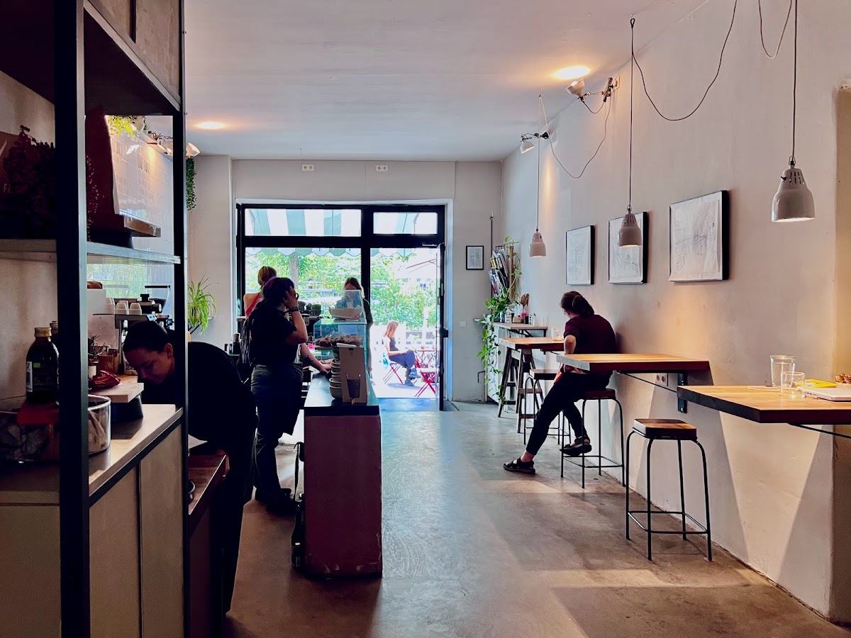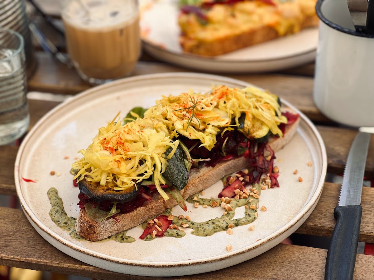Great coffee (decaf as well) and interesting vegan sandwiches (sauerkraut aubergine zucchini) on the pretty and quirky Sonnenallee.