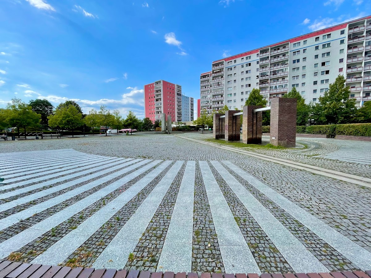 Liegt genau am U-bhf. KAULSDORF NORD, sehr schöner Platz mit zahlreichen Restaurants u Geschäften u einer Musikschule. ???? Leider wird derzeit der einst so schöne Wasserkreislauf abgerissen. Schade. :( ansonsten ein schöner Platz zum Erholen u pausieren.