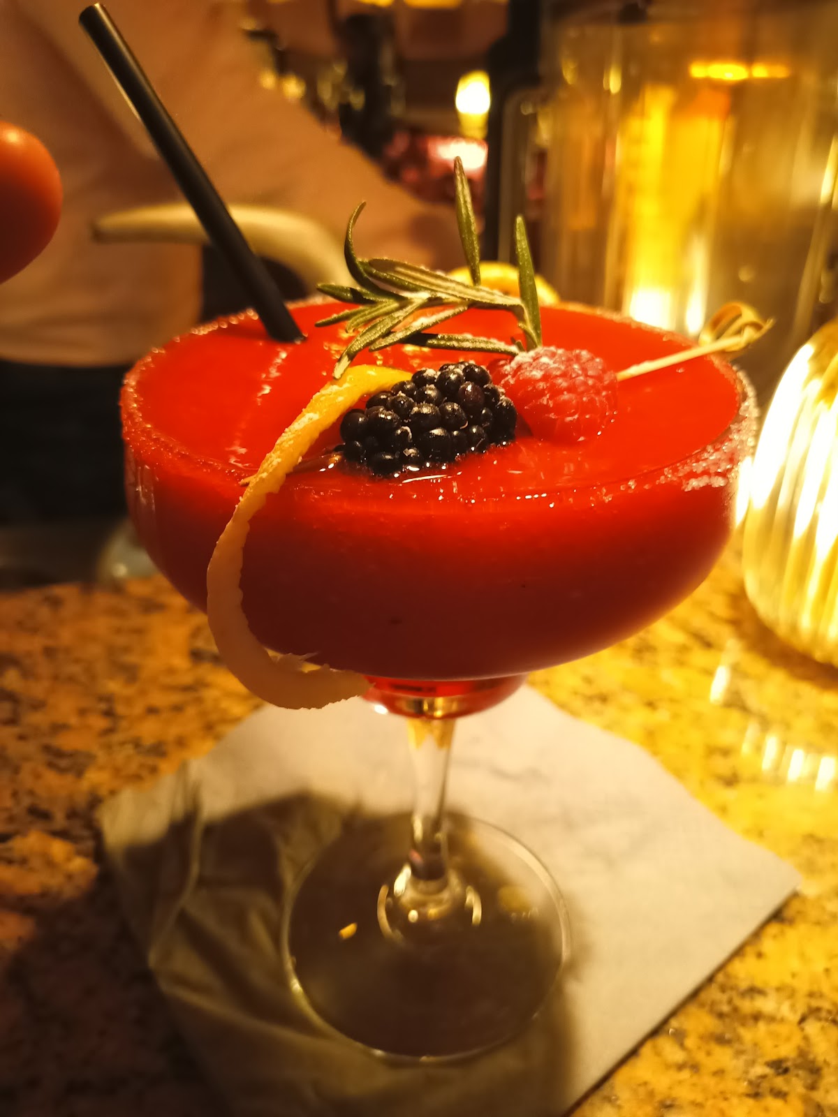 Delicious cocktails made with fresh fruit and garnished with fresh berries and other natural ingredients. The bartenders share excellent recommendations and even suggest cocktails tailored to your specific preferences. The atmosphere is phenomenal with excellent, fun music, comfortable seating, and an overall open and welcoming atmosphere. It’s our new favorite spot! Pictured is a cocktail with rosé, gin, and berries… lecker!