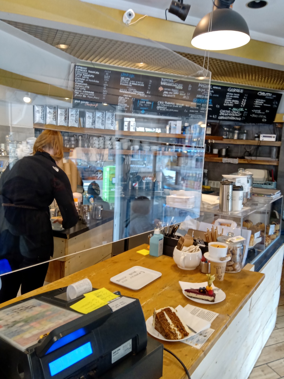We found this place while looking for a quick place to have breakfast that also has gluten free options. They have a few gluten free options and a couple gf/vegan options--all labeled. I got the blueberry cheesecake (gf/vegan) and although the textures were a little strange, it tasted really good. I also got the peanut butter chocolate chip cookie which I didn't love--it was really crumbly. My partner ordered the jamon serrano sandwich (not gf) and said it was really good. I am not sure about cross contamination.
