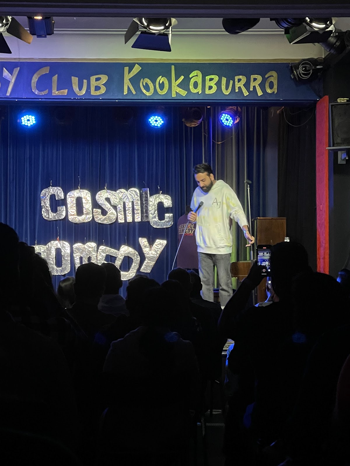 Bought Tickets at the door from one of the friendly hosts for this Friday night show. If you want seats near the front or a table, its best to reserve. Great show with 4 english speaking comedians. There are different shows on different nights such as the open mic, show case and specials. Check out their Website. The crowd is very international, friendly and drinks are available at the bar.