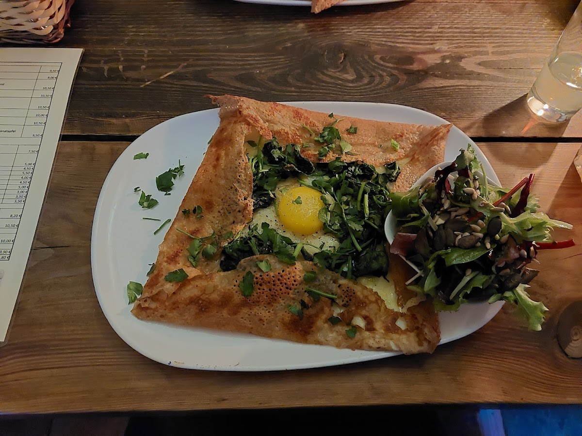 The food was quite good and beautifully presented. The vibe outside as the sun is getting lower is pretty awesome if you're lucky enough to get an outside table. In general, come here for the vibe though (and the food, if you're patient). I would normally not be critical about the wait time for food in any place as I don't mind waiting quite a while for good food, but this place is on the border of mismanagement with the wait times for food. Hearing a food order come out only once every 20 minutes or so, even if they only have one cook on duty, tells me something is wrong with the operation (especially since they're cooking crêpes). BUT, I'd most certainly still come back with this all in mind next time just to sip drinks in the cool ambients for 90 minutes before eating with friends or something. I think a good compromise would be if they had some kind of signature snack which held people over and salted them up to order more drinks during their food wait times. Just a thought.