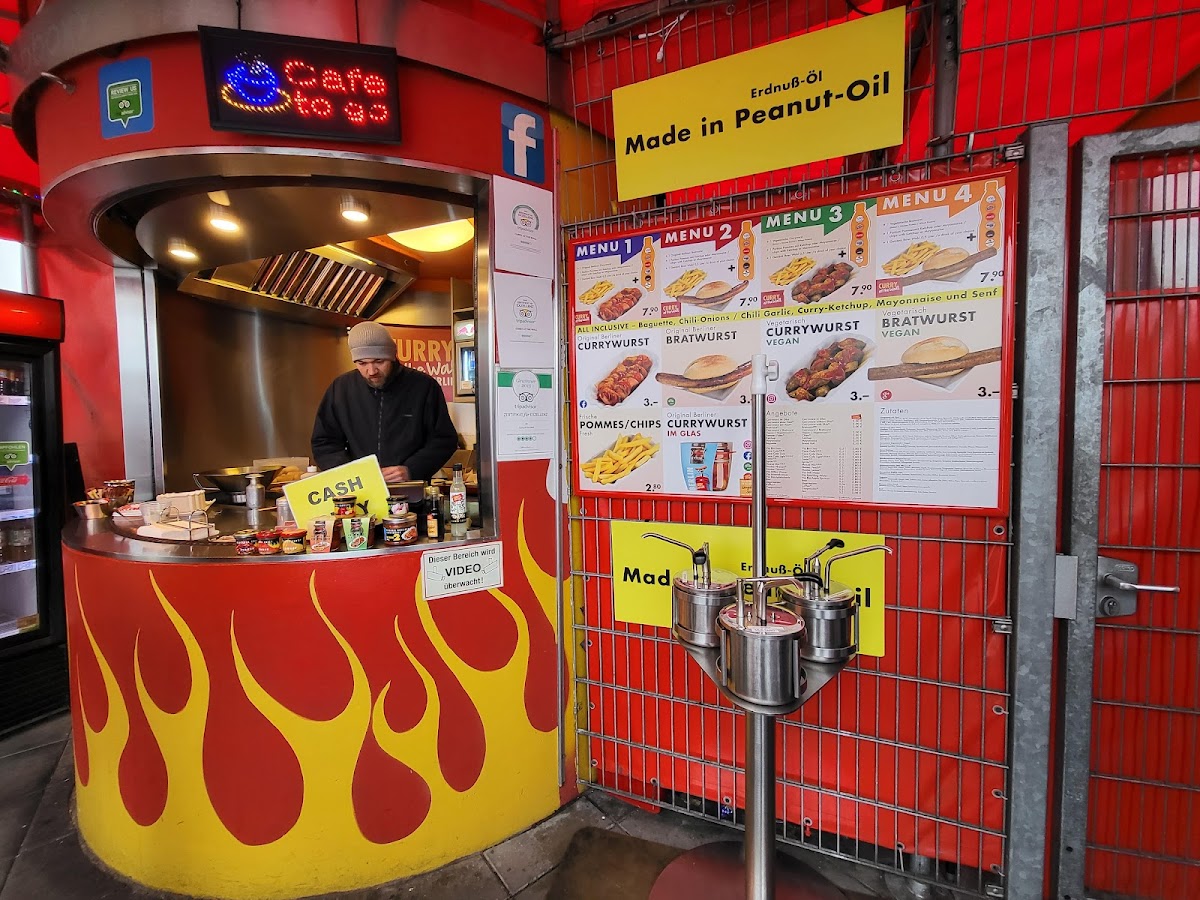 The best currywurst in Berlin. Hands down. The authentic experience, the friendly cook and the family atmosphere added with the delicious food, this place is a must visit when you're at checkpoint Charlie.