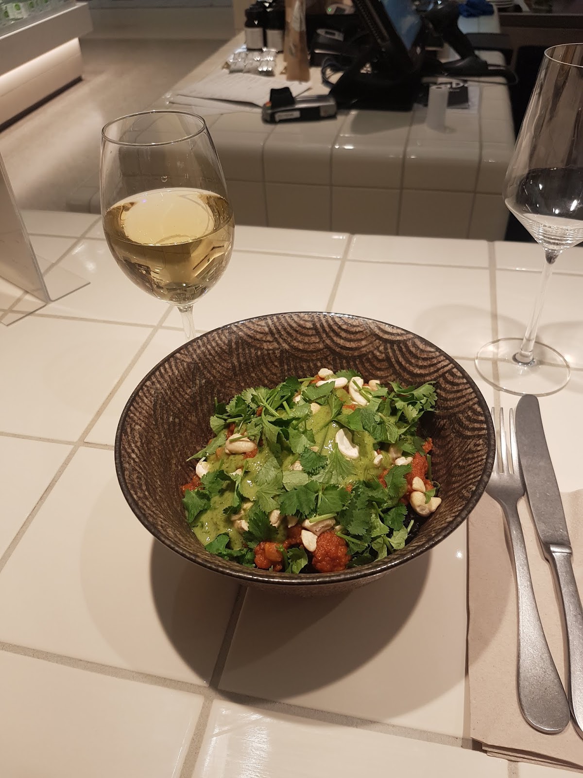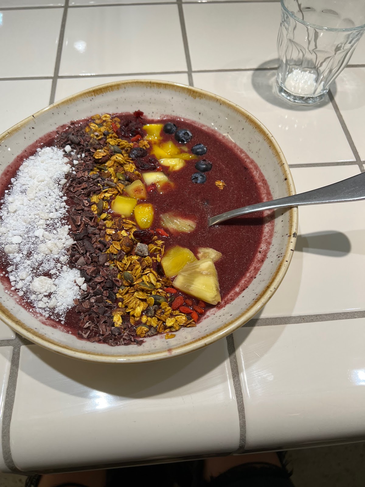 I stopped in for a late lunch. I ordered the salmon, avocado, poached egg toast. It was delicious, with beetroot, edamame spread, and a sturdy but thin slice of German bread. I would go back as a great option for a light lunch. The seating is limited to high chairs at bar counters, but otherwise great.