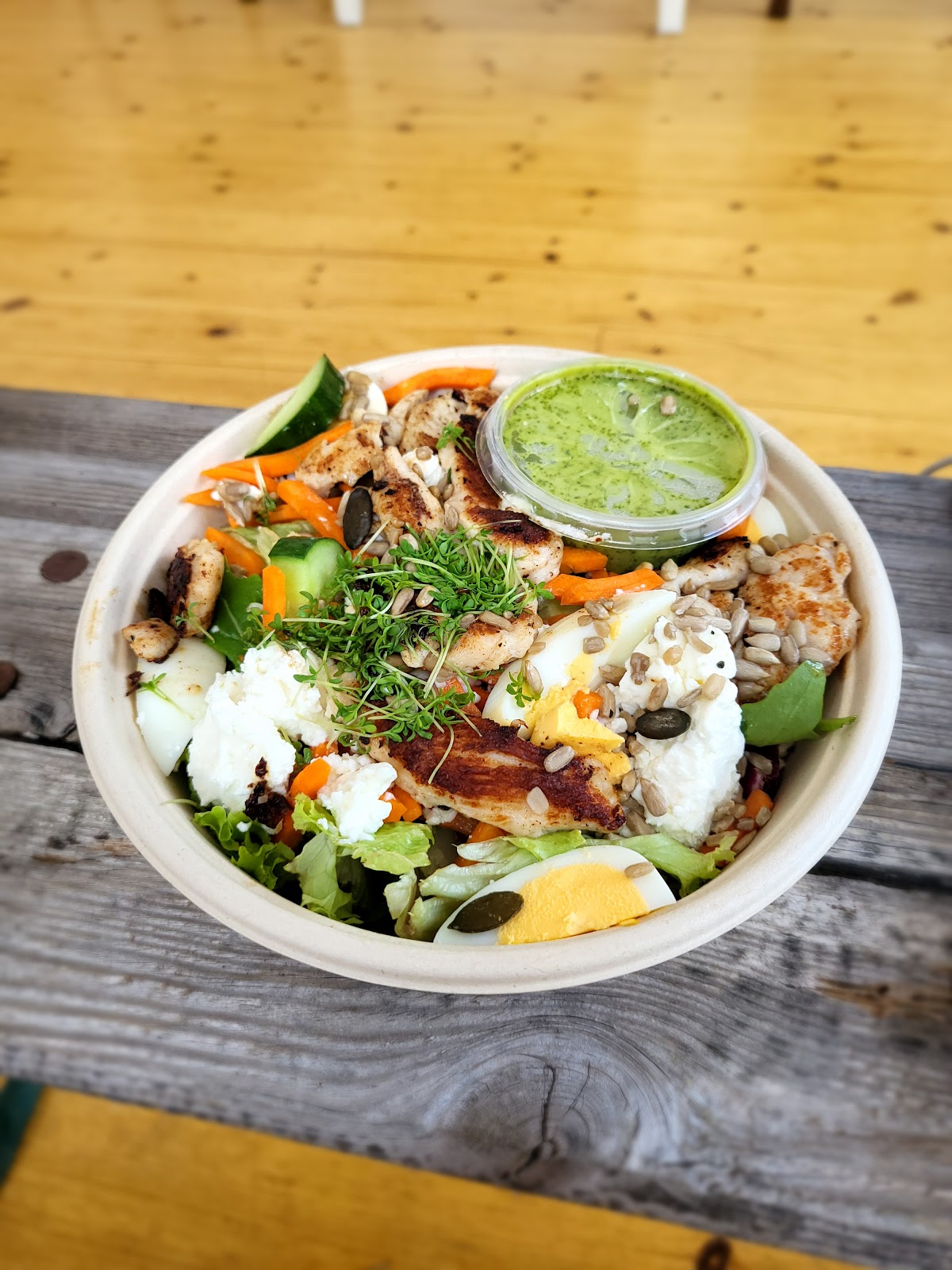 I’ve been to so many different Dean u0026 David in Berlin and I always ordered the same menu - salmon avocado bowl + matcha latte. I feel like I’m doing A/B testing for them just to figure out which branch has the best quality for this menu set. This one is the closest one to my place, but somehow it’s just my first time to pay the visit. I guess I just don’t know how to appreciate the things that can be reached too easily. Anyway, back to the food, I think they served a very decent salmon avocado bowl, but the matcha latte still has some room to improve compared to the one I tried in another brach. Nevertheless, still a very fulfilling meal. I’m just trying to be picky here to pretend I have a high bar. After all, I am a local guide level 6! Too much talk, conclusion: highly recommend!!!!!