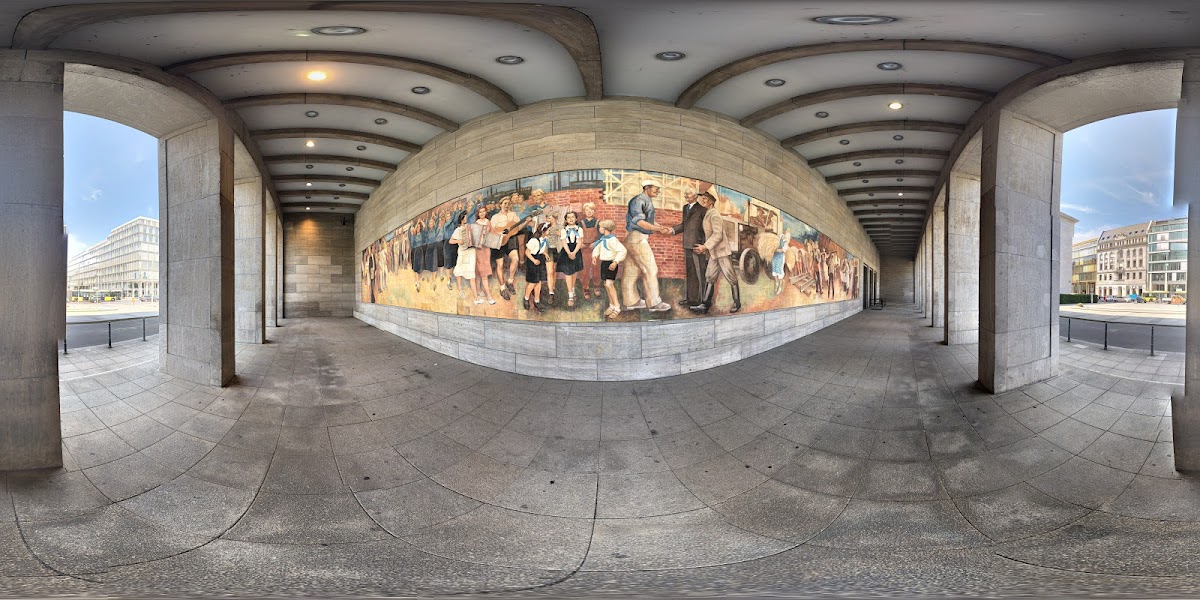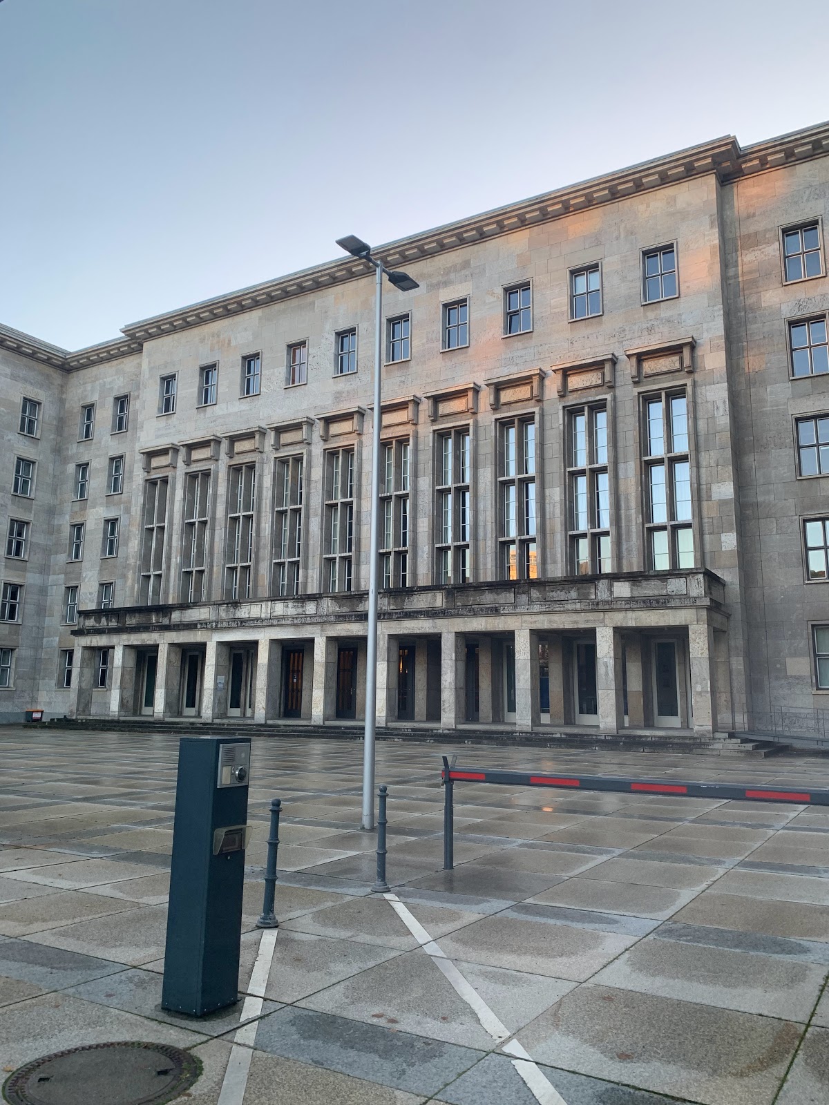 Former Air Ministry lorded by Herman Goering during the second world war.Only 1 bomb hit this huge building and still remains fully intact.Imposing and on the day would have been even more so with the now dismantled huge nsdap insignias.Still can't believe it was missed by the bombers when it was right next to the Chancellery