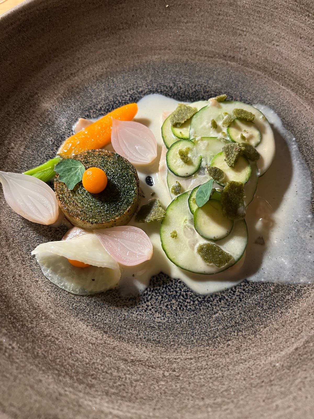 The food was creative and delicious. The ambience is cozy and romantic yet vibrant. Staff were friendly and made great recommendations. I would absolutely come back, this was a highlight of our visit to Berlin.