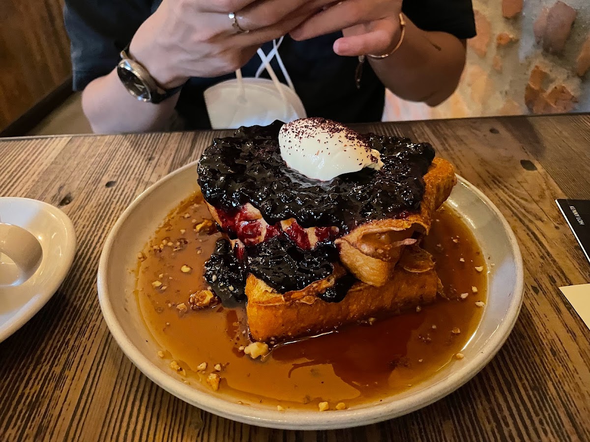 The avocado toast was lovely - the sourdough bread was very nice texture and the avocado was superb. They know how to choose the avocado: not bitter, soft, smooth and A LOT Of it. The whole French toast was fantastic: while the toast set was swimming in maple syrup, its balanced by the citrusy jam on top and the cream tops it all up.