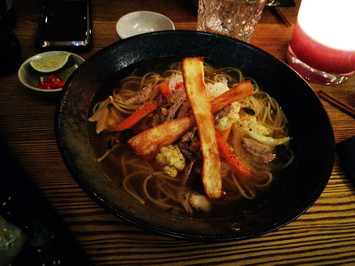Totally delicious and visually striking fusion food like sushi+guacamole and steak+miso. Very attentive staff. Nice cocktails. Striking paintings and modern decoration. Nice enough bathroom area. Outdoor seating with heat lamps seems available but not in use at the time of writing. Very clean.