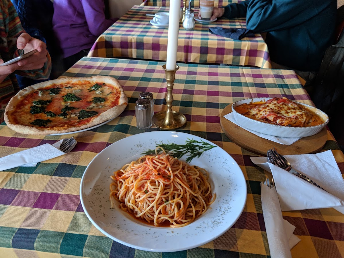 The service was normal, nothing to point out there. However the food was just outrageously bad. The pizza had a strange base and the lasagna we ordered was the worst thing I have tried. It was like a soup of tomato sauce with some overcooked pasta in it. And you almost could say it was vegetarian as I did not taste meat at all in it.
