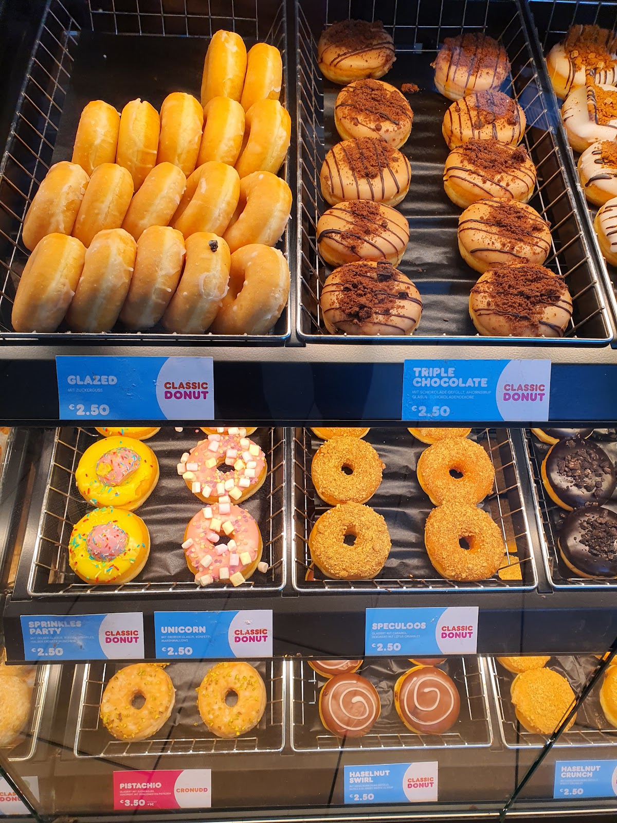 Sugary, calorie donuts, the choices are very less but they taste great. I love the chai latte here. Not as pricy as in alexanderplatz