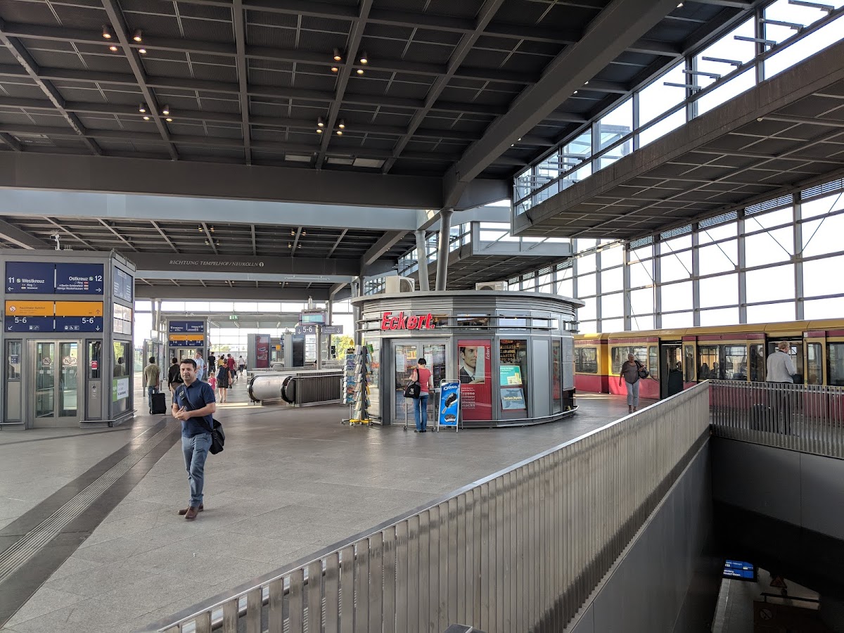 Sehr weitläufig mit zig Läden oben wie unten. Nettes Infopersonal auf dem Bahnhof , oben. Gute Bvg Anbindungen und Taxis. Breite Türen , Behindertenfahrstühle und viele Rolltreppen.