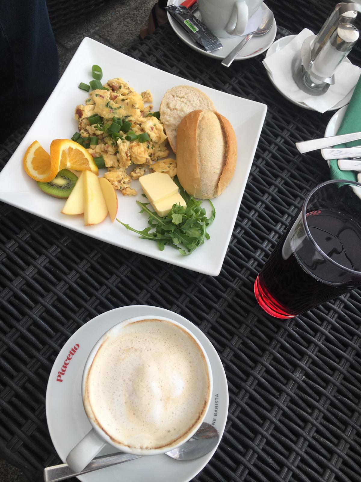 Wie waren dort Frühstücken ich kann es leider nicht weiter empfehlen. Wir haben zwei mal Frühstück spezial genommen. Bei dem Frühstück war Wurst, Käse Räucherlachs mit Meerrettich, Honig, Nutella und Marmelade bei. Bei einem Frühstück war ein offener leerer Honig serviert. Wir haben statt dem Lachs Käse gewählt da wir beide keinen Räucherlachs essen. Das wurde leider vergessen aber nach Anmerkung sofort gewechselt. Die Brötchen waren leider nicht frisch und das Brot war alt und hart ???? nachdem ich sagte das dass Brot nicht frisch ist habe ich zwei neue Scheiben bekommen. Die Bedienung war wirklich sehr nett. Der Camembert auf dem Teller war auch schon sehr angetrocknet so das man denken könnte es war ein stück von gestern. In der Speisekarte stand mit frischen Obst... es waren zwei Mini kleine Apfelscheiben, 2 Orangenscheiben, eine physalis die in der Marmelade steckte und eine kleine Hand voll Weintrauben. 2 Scheiben Tomaten die auch nicht mehr so lecker waren leider, 2 Scheiben Gurke und 2 Blätter Salat. Wir haben dazu 2 große Latte, 2 große O-Säfte und eine kleine Cola bestellt und haben ca 55 Euro bezahlt... wir gehen gerne und sehr oft Frühstücken aber gestern waren wir sehr enttäuscht. Für diese Qualität war das Frühstück mehr als überteuert. Für mich definitiv kein zweiter Besuch wert.