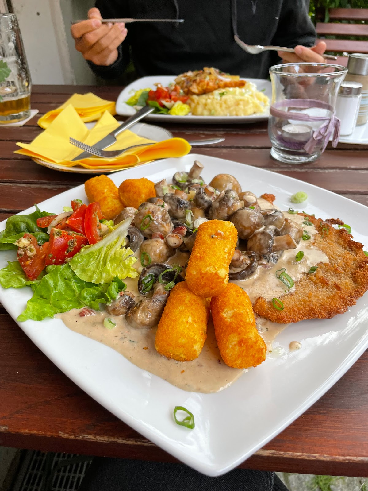Fantastic food, including dessert. Unique, eclectic environment. Dine from couches and living room chairs. Service is slow, but worth the wait. Dined with a group of 7, we all ordered something different and shared. No one was dissapointed in any of the dishes. They do not speak English here so go prepared with a translator app. We translated basics from the menu and just took our chances. All were great as said before. Also, they only take German cards so bring cash. Service was about 2 1/2 hours. So be prepared for it to take some time as others mentioned. Food, especially variety of schnitzel well worth the time.
