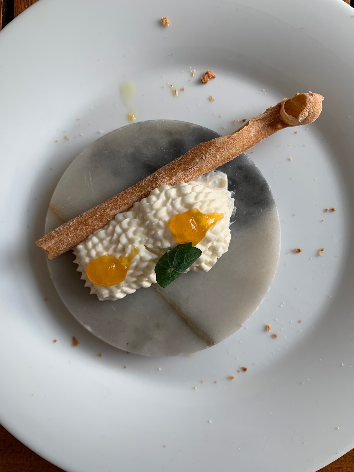 - carrot cake and the other pre and post dessert were good. I thought a carrot cake would be kinda boring but their interpretation with a mascarpone sauce was really good. Unfortunately, the waiter forgot to serve us the sweet wine that was supposed to go with it and only served it to us at the very end when I reminded him.