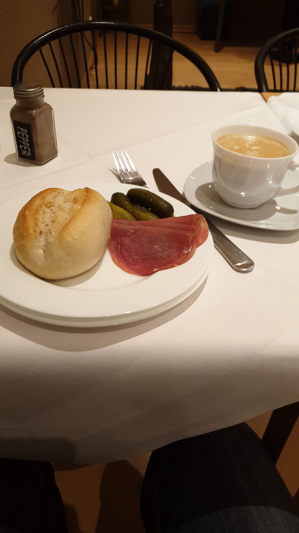 The breakfast for 8,50€ a day was "simple". I wish there was some bacon available. Nevertheless, it tasted good.