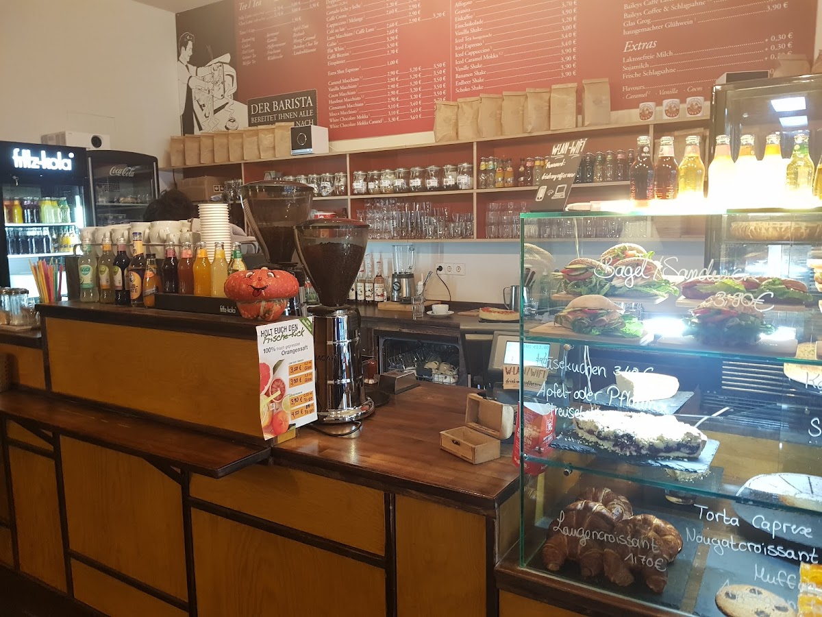 Staff was nice. Great atmosphere. Clean and available toilets for guests. The cappuccino was rather nice, the hot chocolate was average and the Schokobrötchen was pretty tasty.
