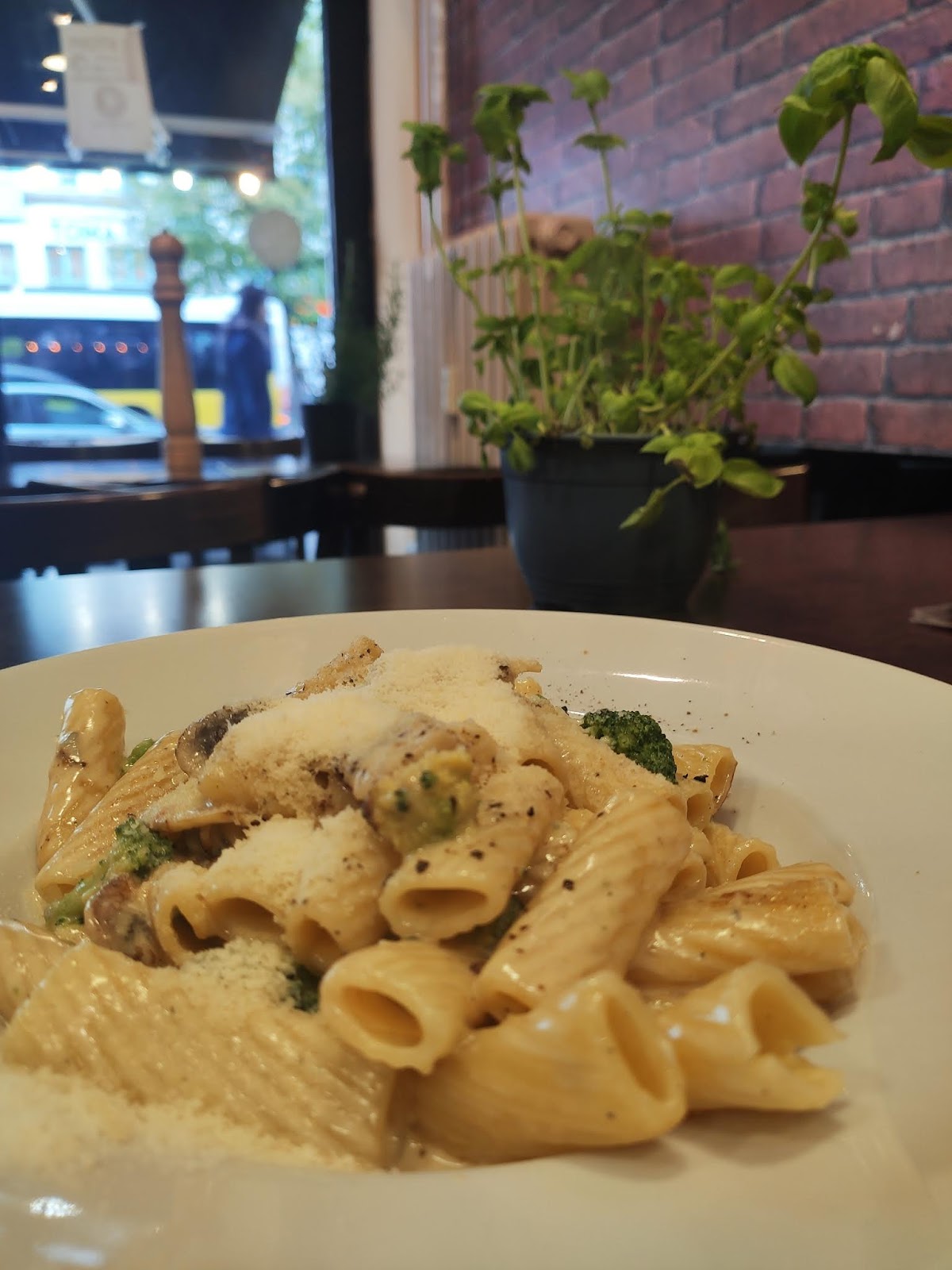They make fresh oven baked pizza and pasta. One of my favourites to grab a quick bite just after work. It is quite reasonable and the quantity is just perfect for the price. I love their coffee machine as it serves Latte Machiato for just 1.20€!!