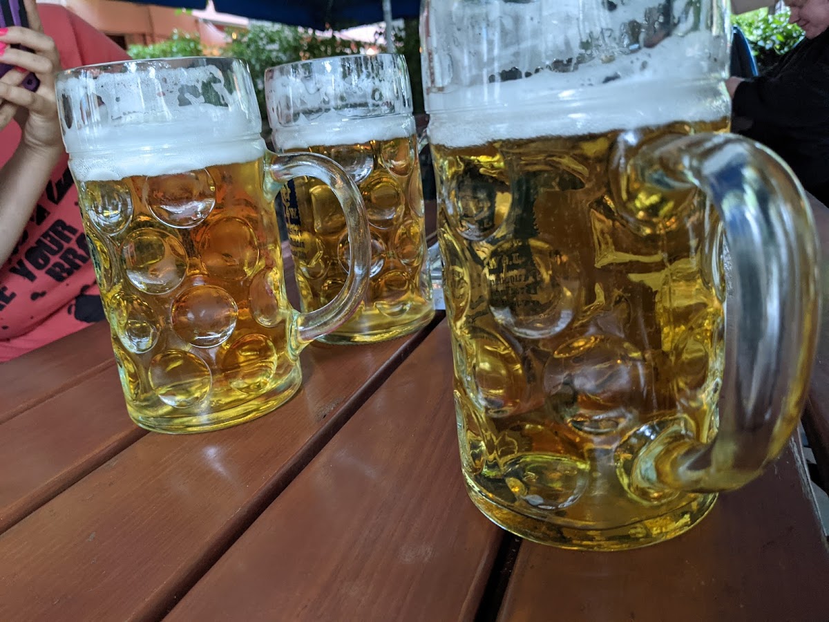 Good bavarian beer from tap. Food is not so great. Cheap price. Very good sercive.