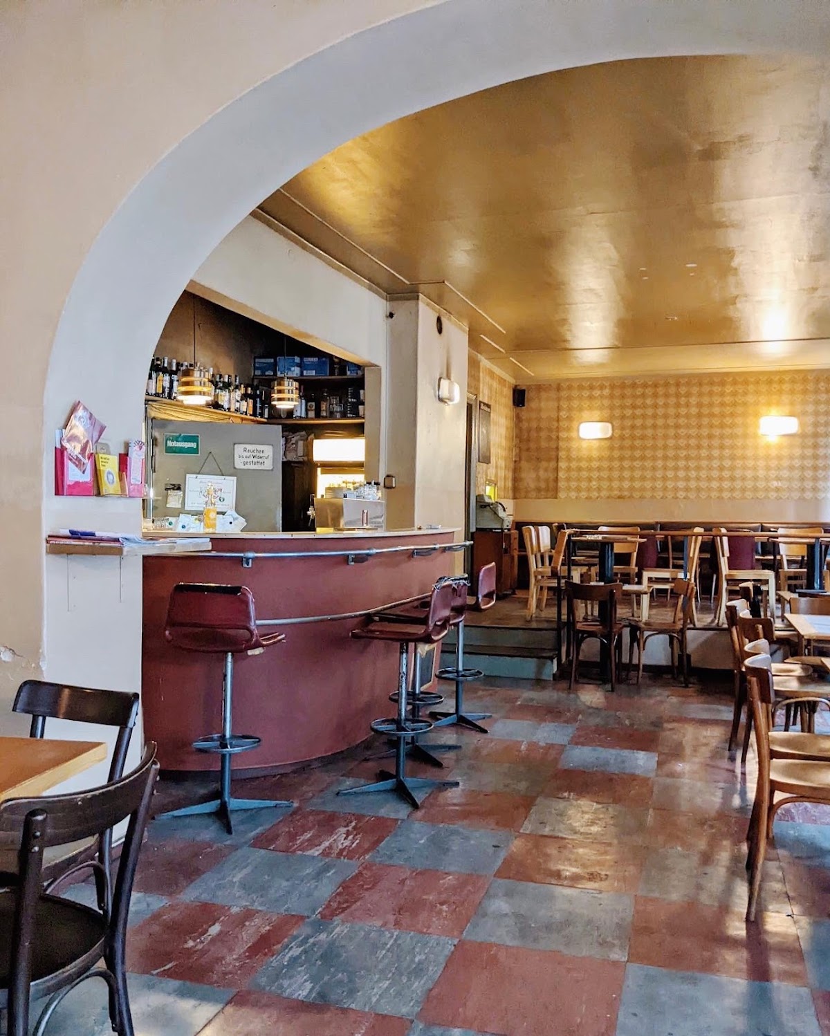 Old-style beer bar. The interior looks like the time stopped some 50 years ago, which is super cool. GREAT own beer at very decent prices, also a selection of bottled beer and a few cocktails and schnaps. Friendly staff, not too loud music, great vibe. It's allowed to smoke inside here, just so you know.