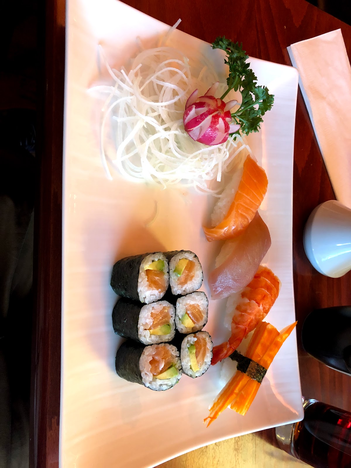 Well-prepared, (seemingly) fresh u0026 tasty sushi at moderate prices. There are plenty of set menus that mostly include 'Japanese' tea u0026 a full accoutrement, if plain, miso soup. My issue was with the poor service: Noone welcomed my entrance, the server was more concerned with socializing with the only other guests than pay me attention, after the food was delicately served, I no longer heard from any staff...not a query as to how I'm enjoying the food nor did anyone present me the bill as the only customer had to do it himself. More of a 3.5 really, but rounded-down for I left in a worse mood than I entered, not a positive.