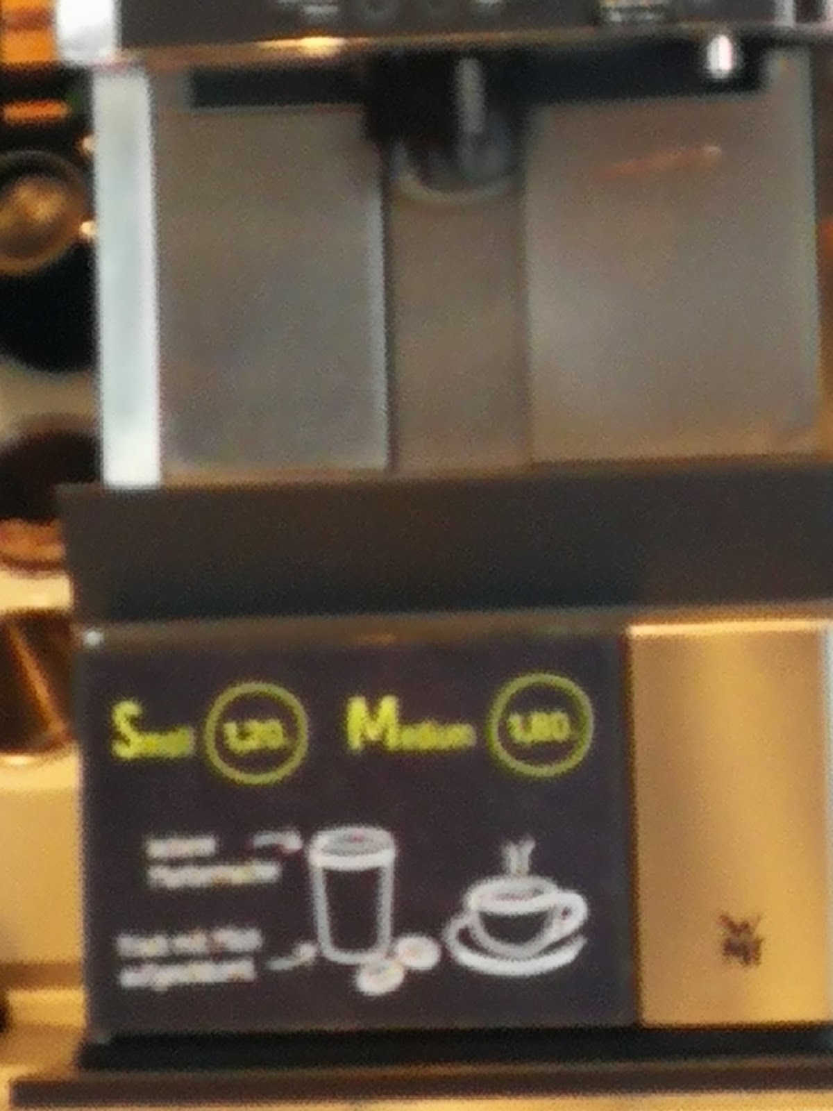 Es wird mit frischem heißen Kaffee geworben. Stimmt auch: Heiss ist braune Wasser in jedem Fall, leider hat es aus meiner Sicht nicht wirklich viel mit Kaffee zu tun. Die Bezeichnung "Dünn" ist hier noch untertrieben.