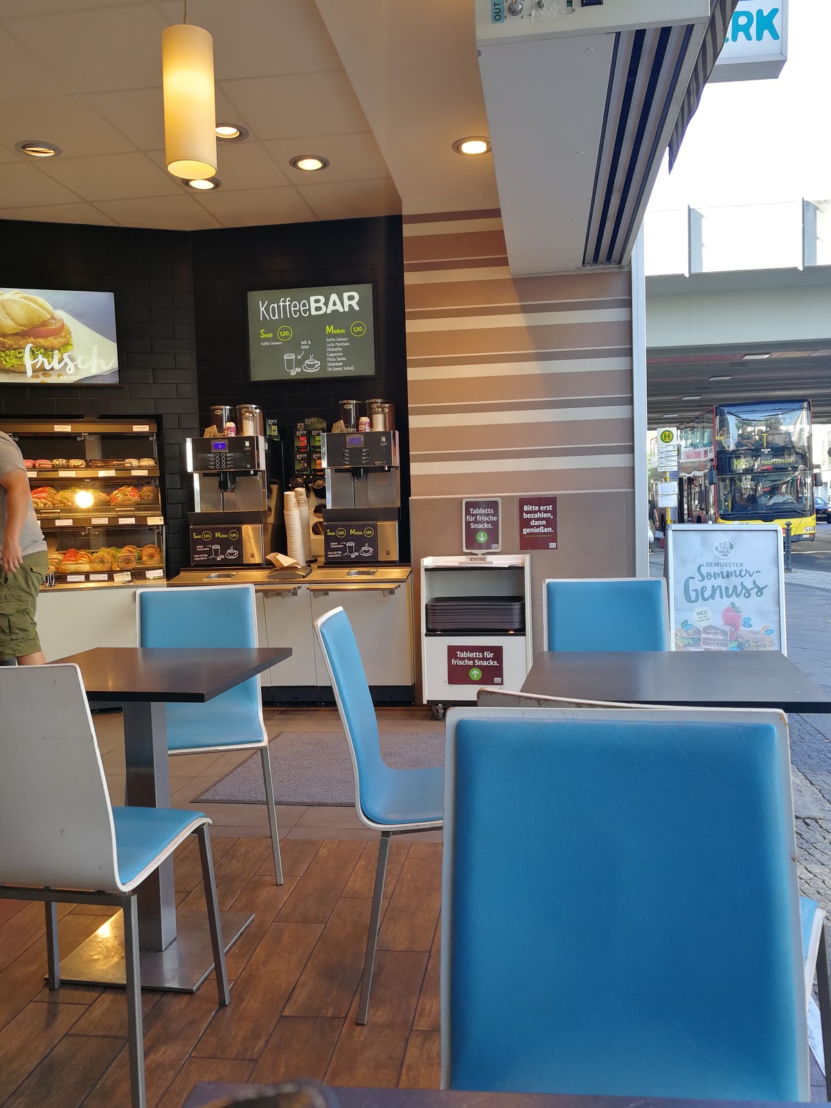 Immerhin wird für diese Brühe das 2 Euro verlangt. Auf meine Nachfrage hin ob man die Intensität auch irgendwie erhöhen könnte war die Servicekraft die gleichzeitig auch die Kasse machte nur in der Lage eine auswendig anmutende Floskel rauszuhauen" die Intensität ist von Kaffee-Experten so festgelegt worden und ist demnach perfekt. Naja, das war wohl der letzt Kaffee hier