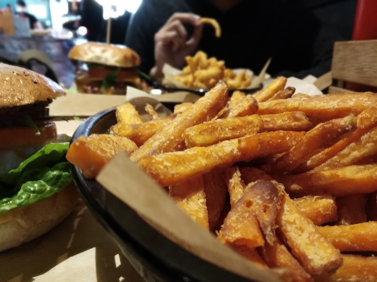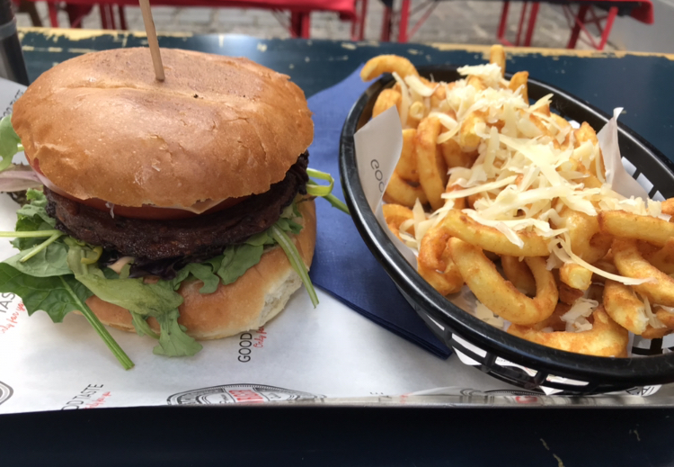 I was after curly fries and real cheese fries in Berlin and came across this place in Friderichschain. I got the veggie burger (with beetroot?) and the curly fries w/cheese. The cheese wasn’t melted and it was kind of falling off the curly fries, but the fries themselves were tasty and crunchy.